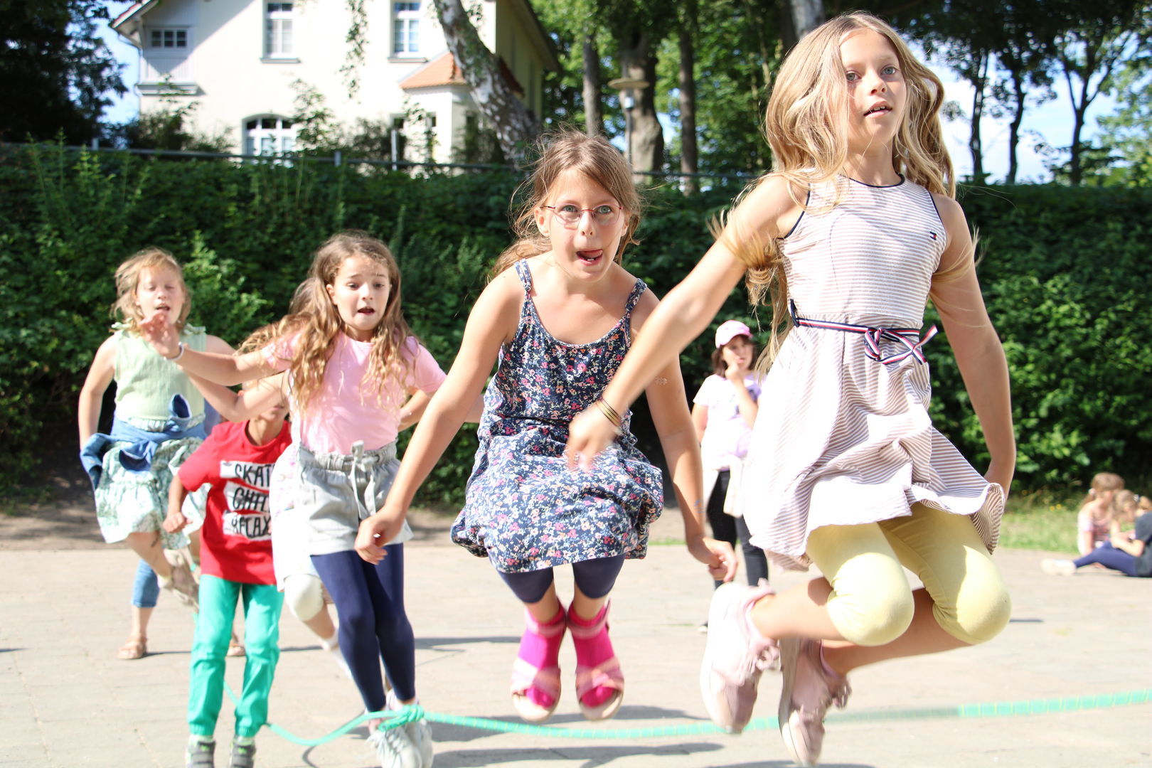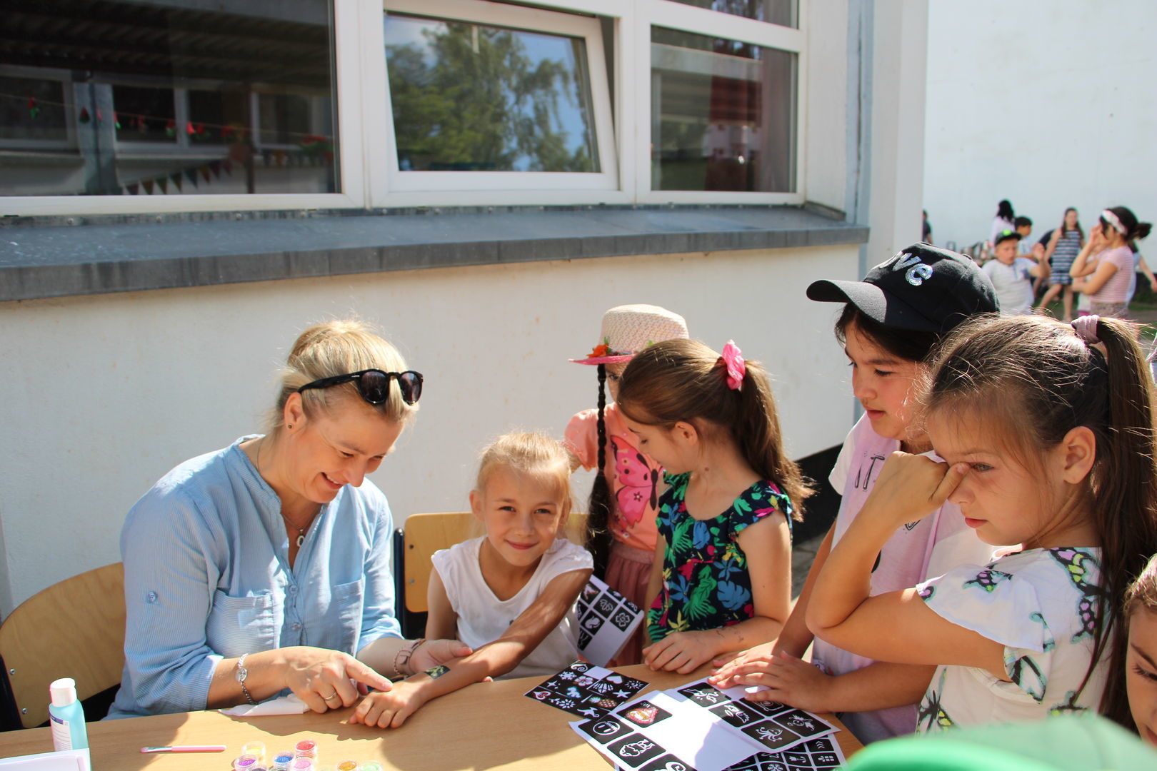 Das anschließende Sommerfest mit vielen abwechslungsreichen Angeboten für die gesamte Grundschule ließ aber die Tränen schnell trocknen. Mit Seifenblasen, Sackhüpfen, Schminken, Tattoos, Dosenwerfen, Zielschießen, gebastelten Hüten, Geschicklichkeits- und Gruppenspielen, Kratzbildern, Seilspringen, Schach und vielem vielem mehr wurden der Sommer gefeiert und die Ferien begrüßt.